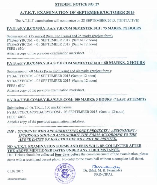 ATKT Exam notice | St. Andrew's College of Arts, Sc…